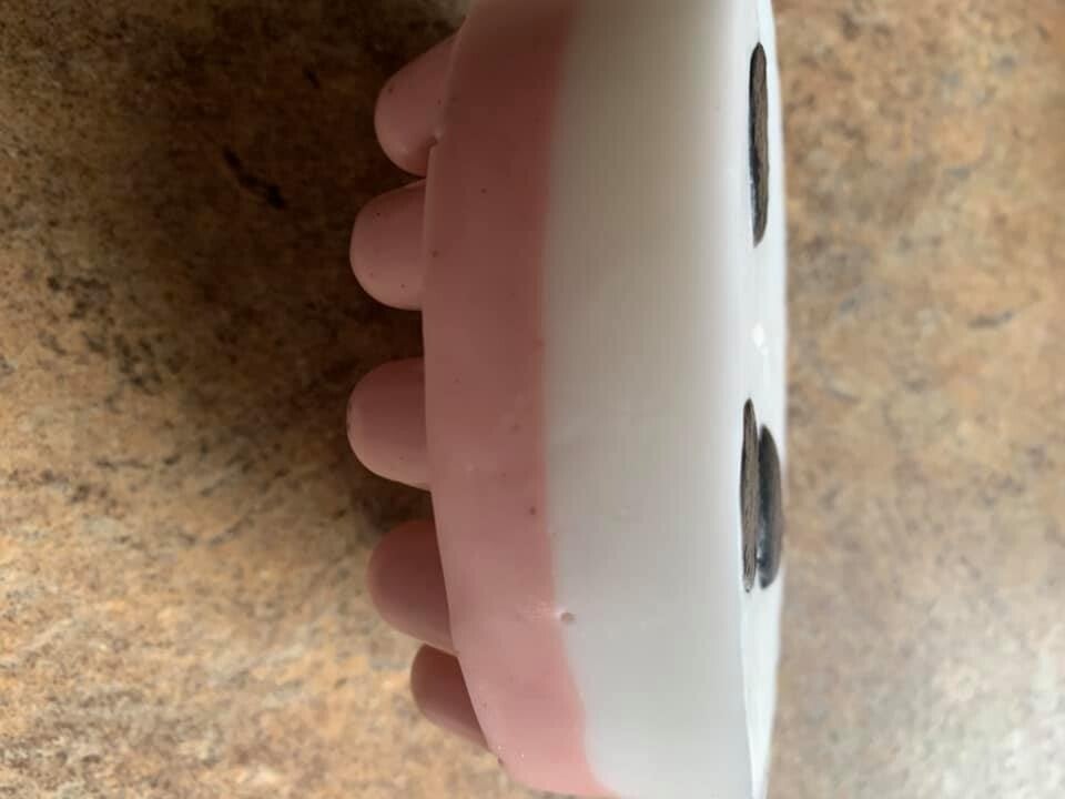 THIS SOAP IS MADE IN THE FUN SHAPE AND COLOR OF A COWS UDDER, HOWEVER; ITS A SERIOUS AIDE IN FIGHTING ACNE AND BLEMISHES. THIS SOAP IS COMPLETELY ORGANIC EVEN THE COLORANTS ARE FROM ROSE KAOLIN CLAY AND ACITVATED CHARCOAL